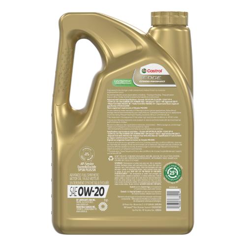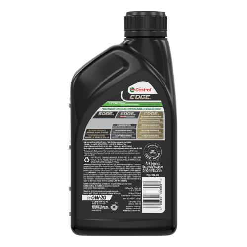 Product Details: The Castrol Edge 0W20 LL IV Synthetic Engine Oil, 946-mL, provides complete protection for today's modern engines. The 0W-20 viscosity helps maximize engine efficiency while reducing friction to improve fuel economy. The synthetic blend sustains maximum performance even under pressure and at high temperatures, delivering optimal power and response at both low and high engine speeds. With claims meeting ACEA C5, Porsche C20, and VW 508 00/ 509 00 standards, this oil is designed to protect engines requiring a high level of performance and protection.