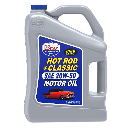 Product Details: Lucas Hot Rod & Classic Car Motor Oil is manufactured with the highest quality paraffinic base oils and is fortified with a unique additive package containing high levels of zinc, molybdenum and phosphorus, which provides a tougher, thicker additive film for maximum protection even under the most severe conditions. It improves the film strength between the cylinder wall and piston rings and slows oil burning and improves pressure in worn engines. It has good cold temperature properties and stands up to high operating temperatures. It is compatible with methanol and all racing fuels, as well as with synthetic and non-synthetic oils.