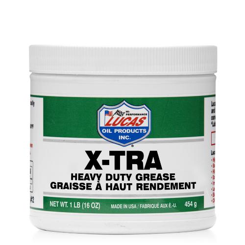 Product Details: Virtually wash-out proof. Stands up to high temperatures and stays soft in very low temperatures. EP fortified and exceeds OEM specifications. Lucas X-TRA Heavy Duty Grease was formulated for automotive, agricultural, heavy-duty and industrial applications. It is virtually waterproof and is more stable than all conventional lithium grease. It is fortified with an extreme pressure additive package and it exceeds OEM Lube for Life specifications.