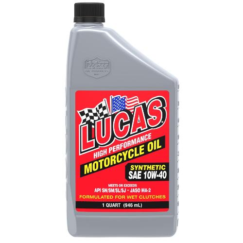 Product Details: Lucas High Performance Synthetic Motorcycle Oils are the result of technology gained through years of blending motor oils and gear oils for the racing industry. Built for endurance, these oils will lower oil temperatures, extend the life of vital components, reduce noise and leaks and increase performance.